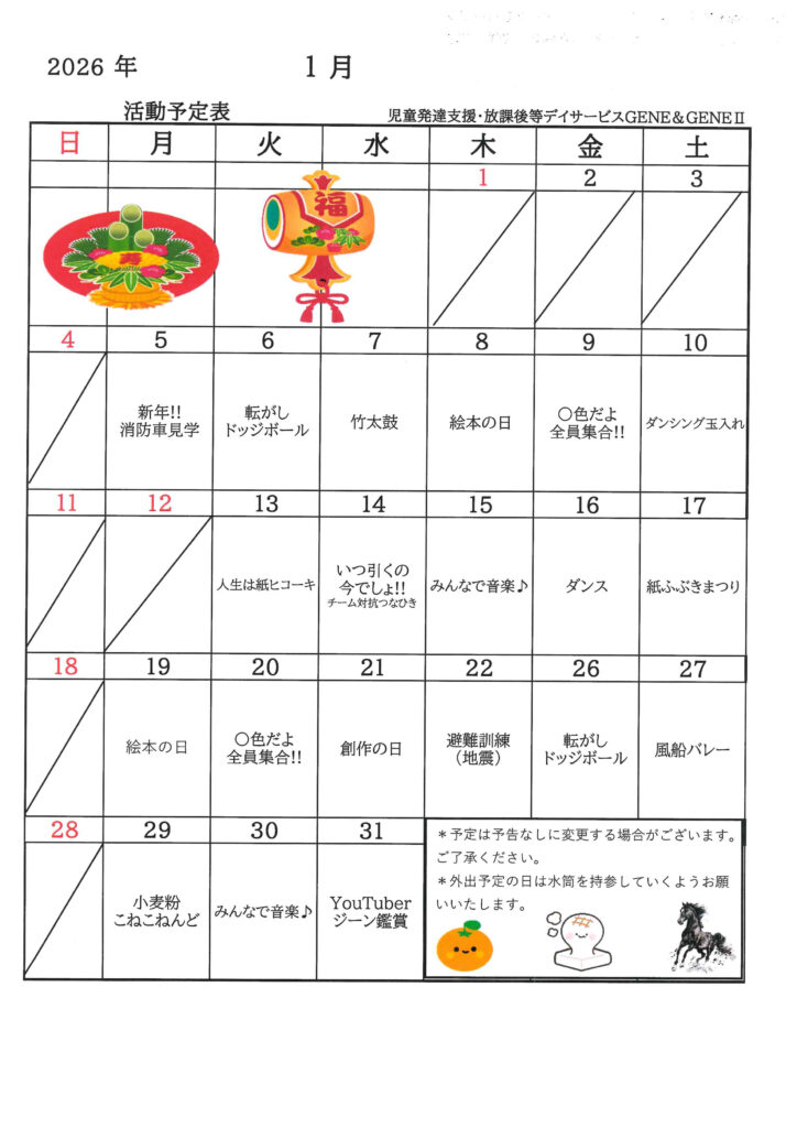 2026年1月活動予定表(放デイ)アップしました